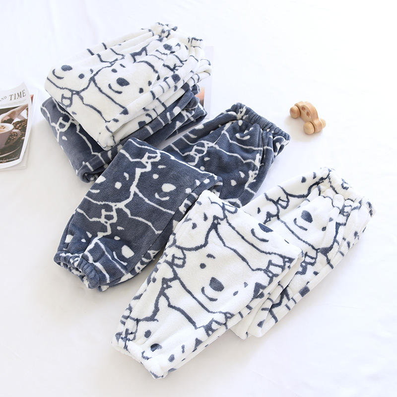 フランネルの簡単なペンの熊の睡眠のズボンの女性の男性の秋冬の保温は厚いサンゴの絨毯の閉じた口のズボンのカップルの家のズボンを厚くします。
