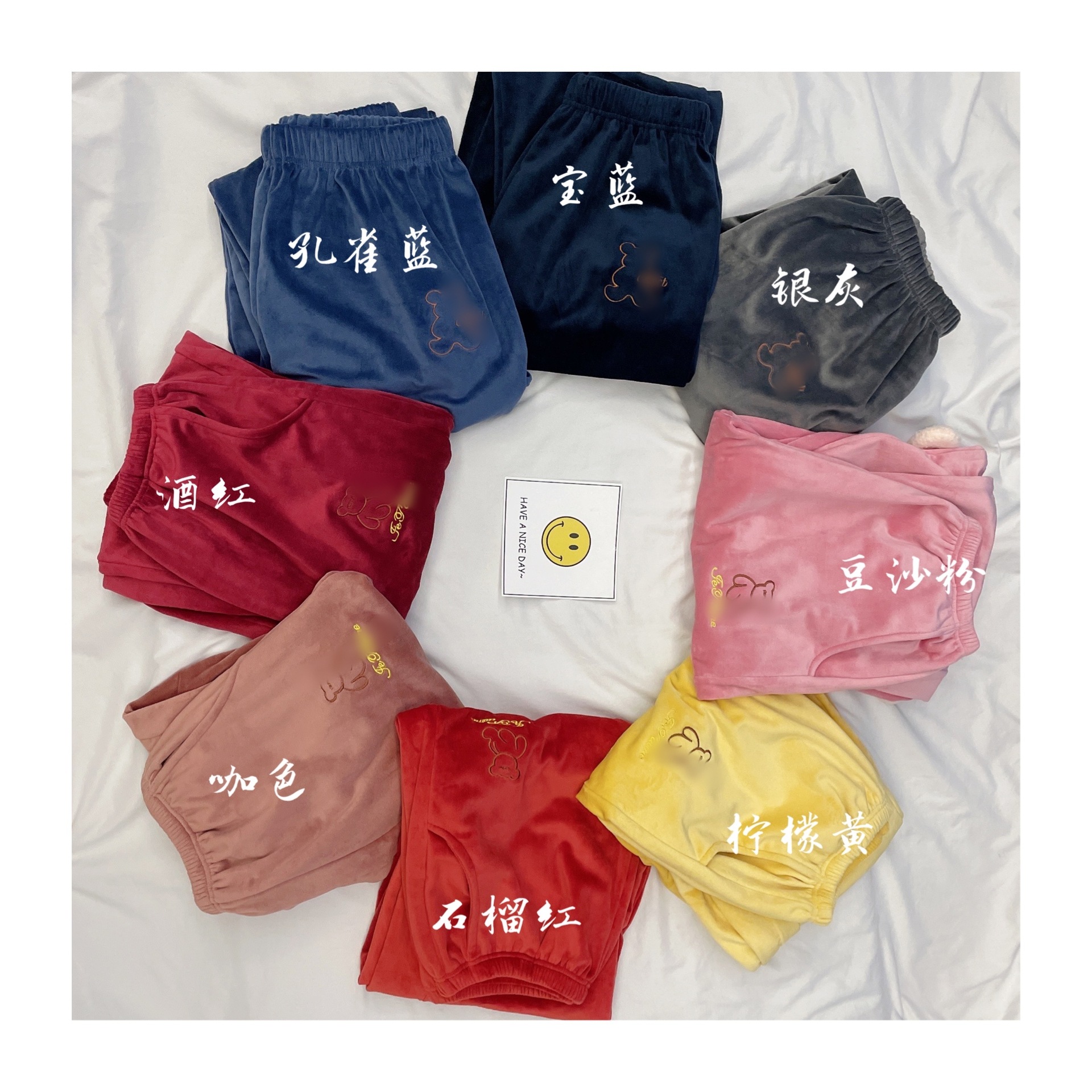 海島の絨毛の寝ズボンの女性は秋冬に厚くて保温します。