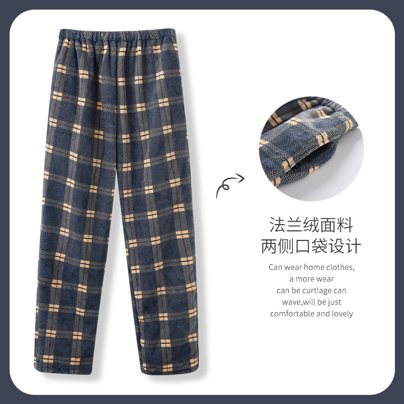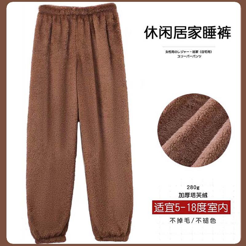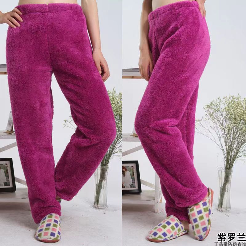 冬にはサンゴのベルベットを厚くして男性のズボンに太ったサイズの250斤の女性フランネルの保温と長いタイプの家庭パンツを追加します