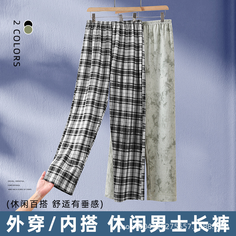 無印風全綿格子寝ズボン男秋冬純綿長ズボン家庭用ゆるい男性春秋家庭用ズボン