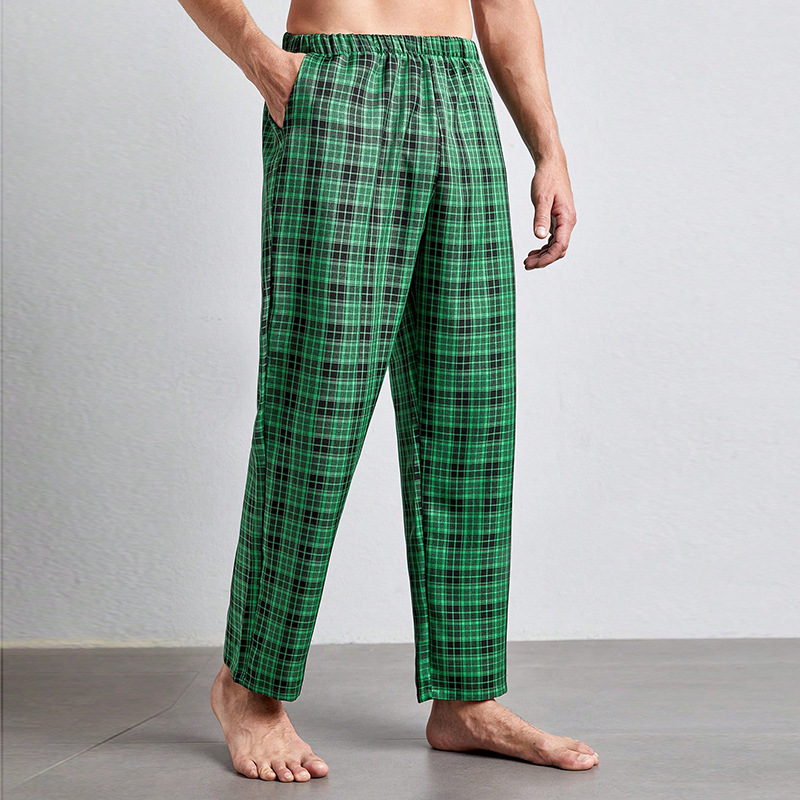 メンズクラシックチェック柄パジャマパンツ春と夏のルーズアウターパンツ綿シルクカジュアルロング空調パンツホームパンツ