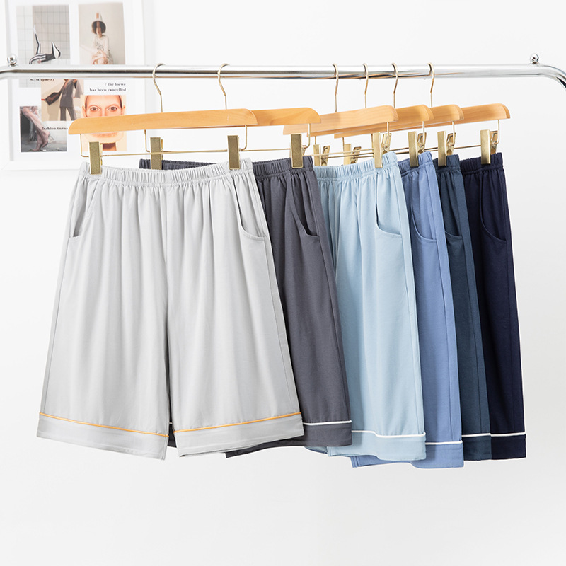 薄いモーダルメンズホームパンツ、ゆったりとした大きいサイズのウエストゴム付き5点パンツ、メンズポケットカジュアルパジャマ