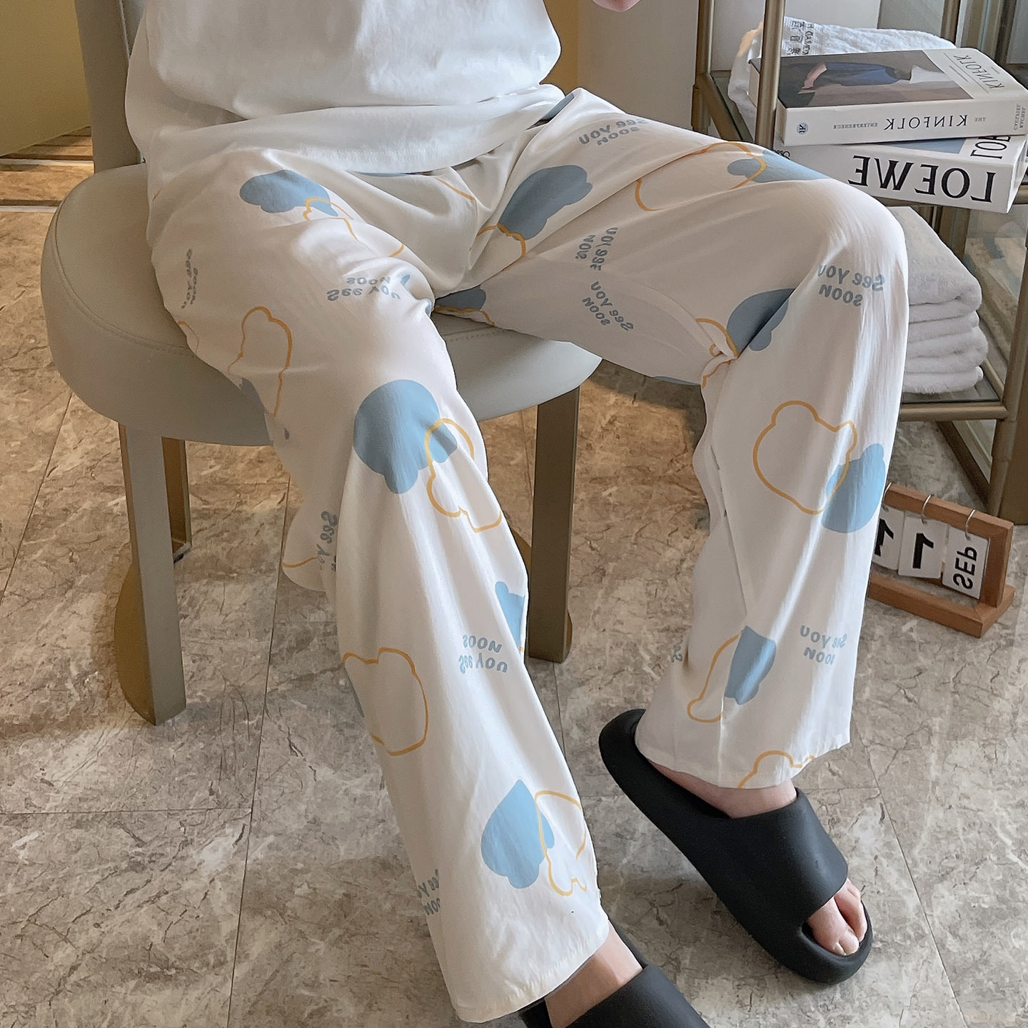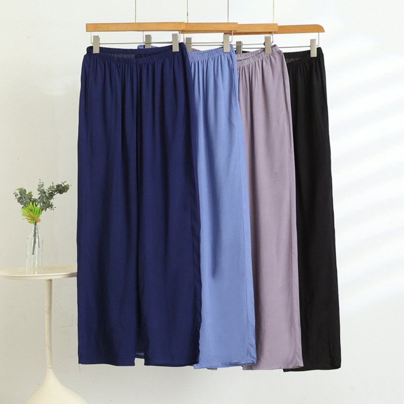 メンズコットンシルクパジャマ、夏用薄手カジュアルパンツ、人造綿ルーズストレートパンツ、ホームパンツ、空調パンツ、防蚊パンツ