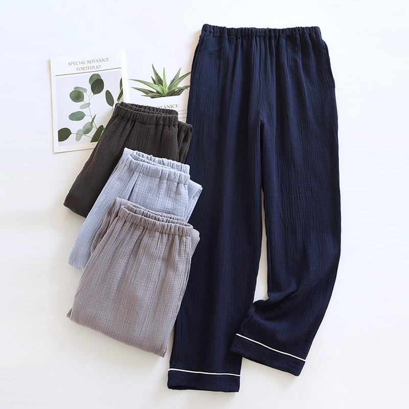 男性の純綿ガーゼの寝ズボンは春と秋に簡単に腰を緩めます。