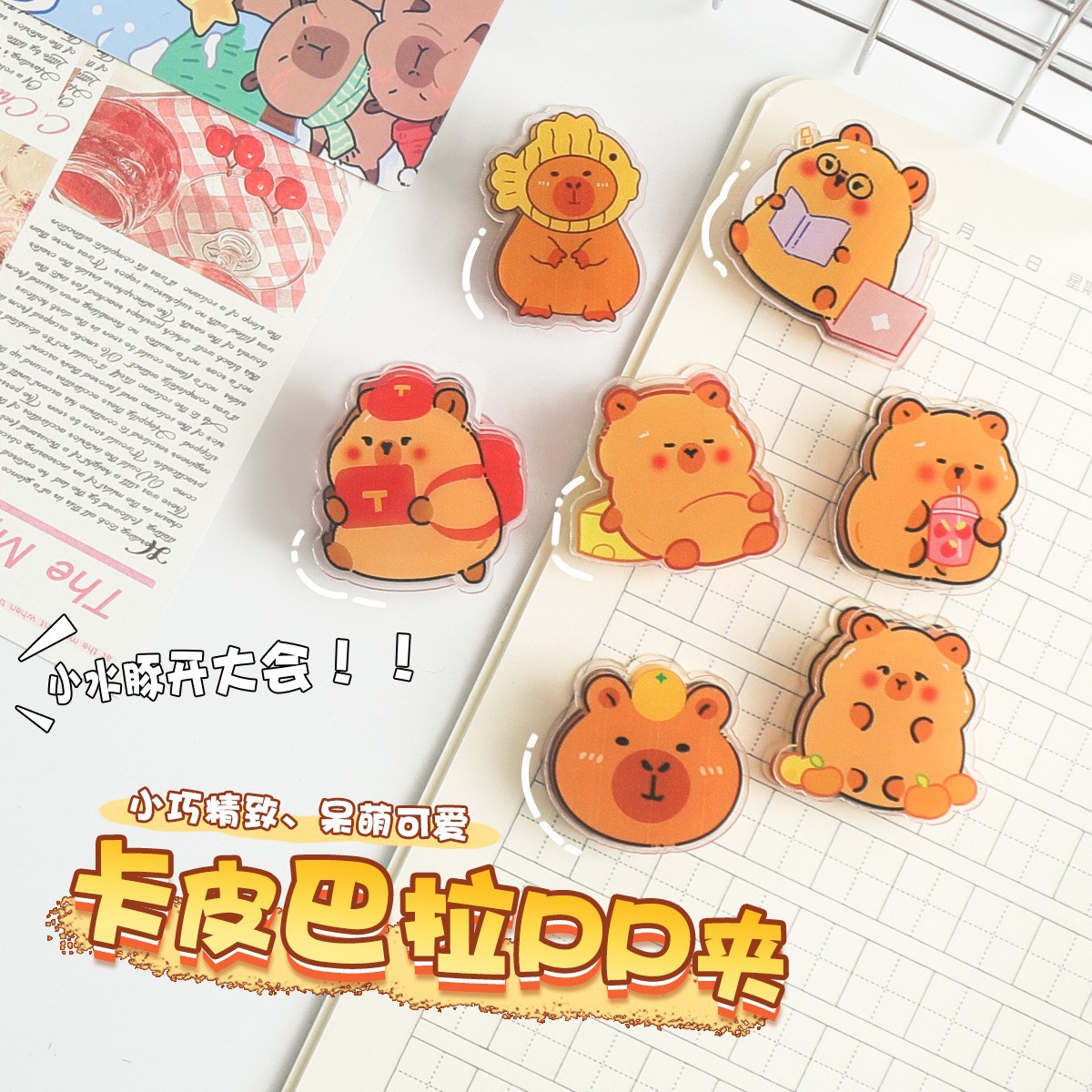 Kapibala PP クリップクリエイティブ学生テスト用紙クリップスナックシールクリップかわいい動物アクリルユニバーサルハンドブッククリップ