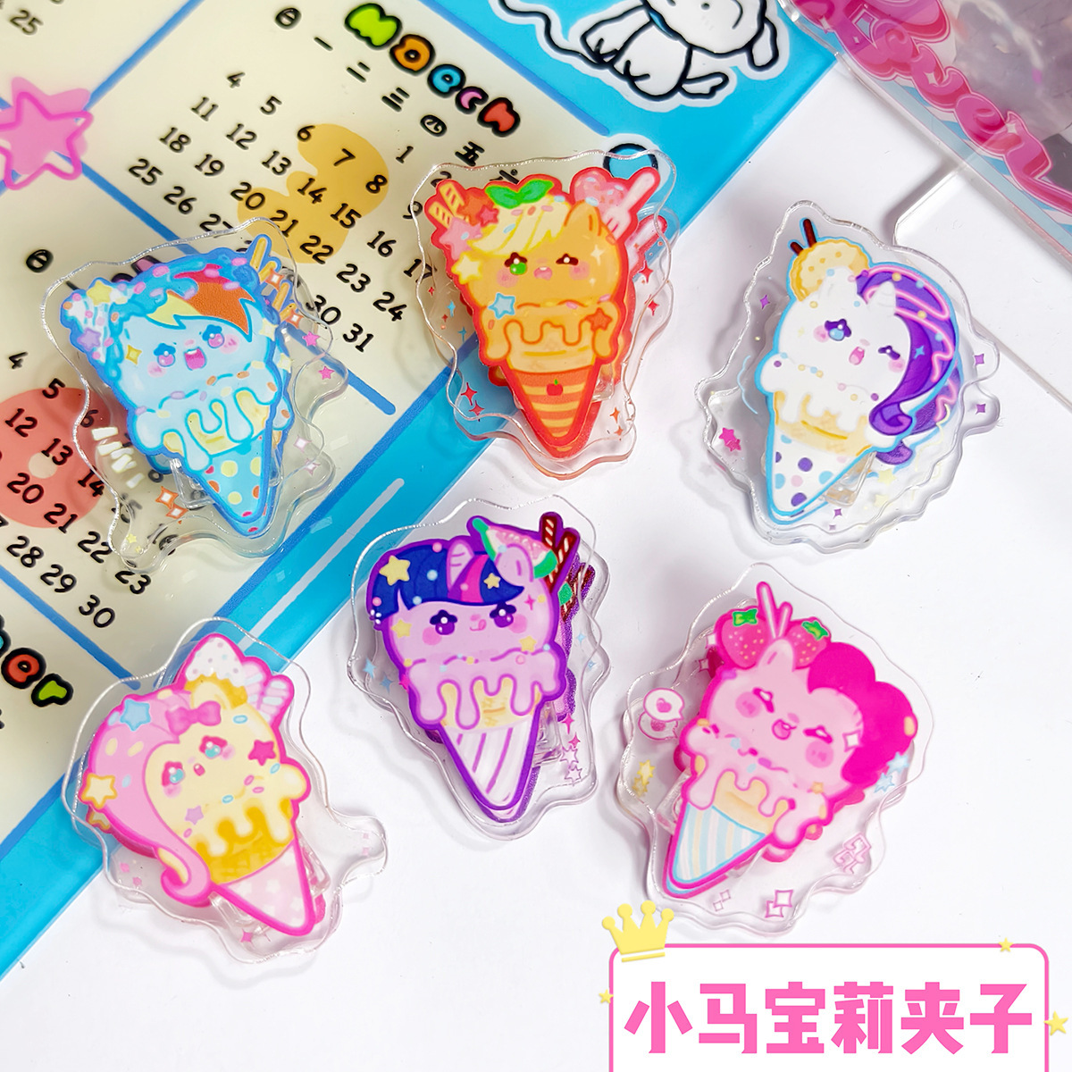 赤い本かわいいアクリルppクリップポニーポーリーアイスクリーム漫画クリエイティブ試巻クリップ便箋クリップ