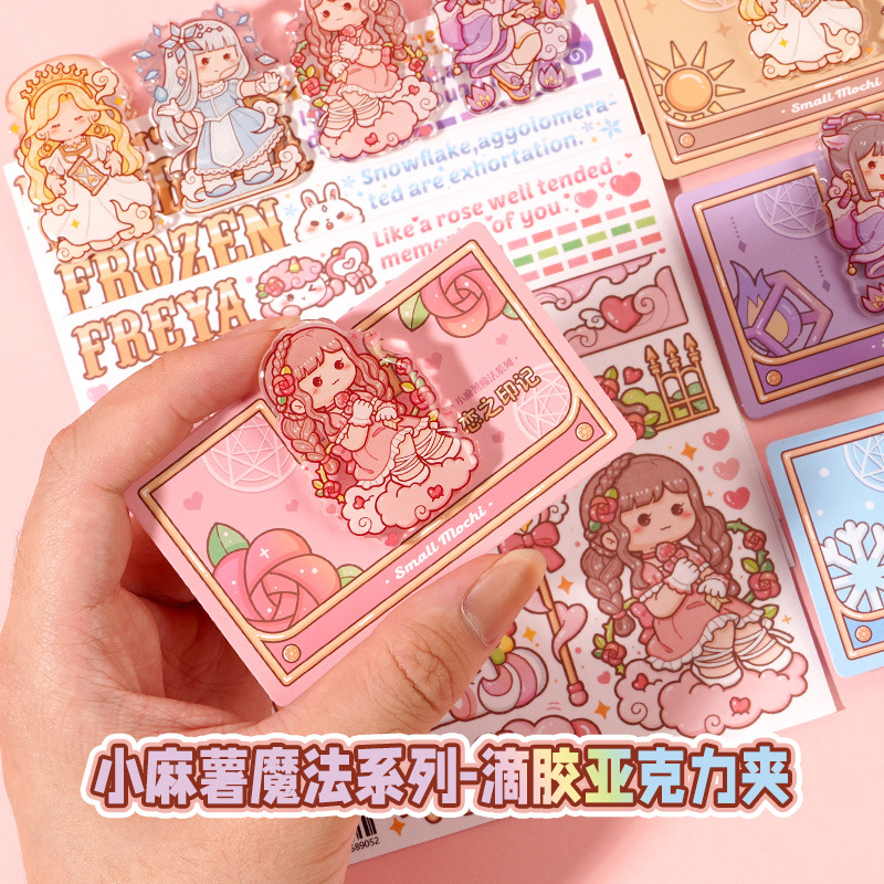 サツマイモの魔法のシリーズのゴムのアクリルの手帳のクリップの答案用紙の事務固定の装飾の工具の本の挟み