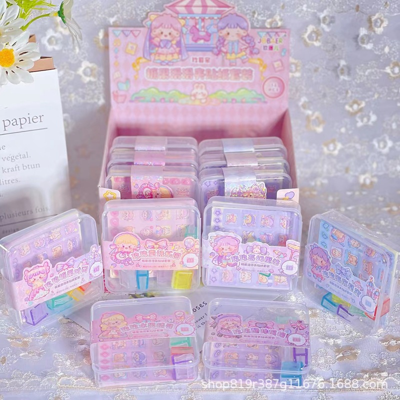 JBE82 キャンディスライドクリップステッカーセットハンドブックアクリルクリスタルクリップ 18 個箱入りハンドブッククリップもち米