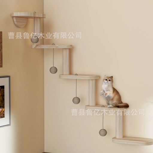 現物壁掛け型木製キャンバス猫巣猫跳台剣麻縄木製猫掴み柱卸売り実木猫登り架