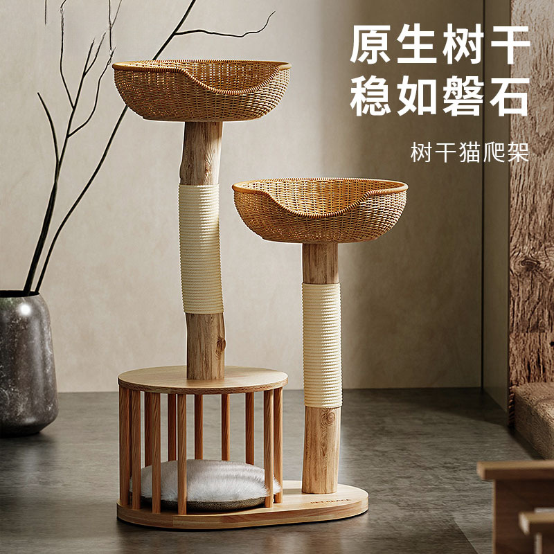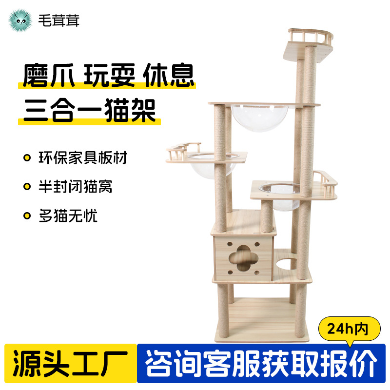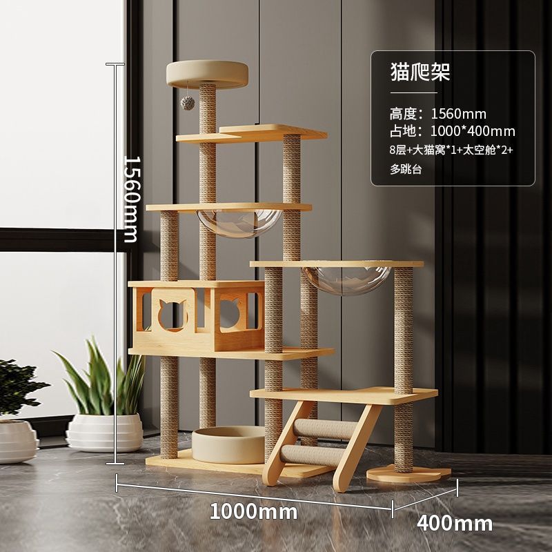 ラグドール大型太い無垢材猫クライミングフレーム猫の巣キャットツリー一体型高層お手入れ簡単サイザル麻織り四季スペースカプセル