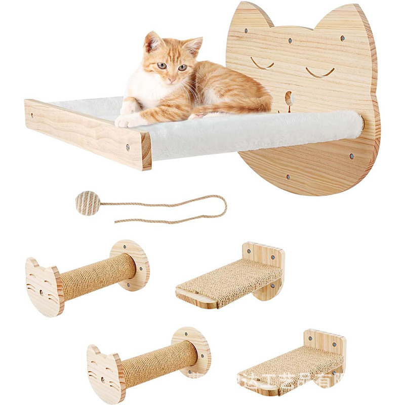 クロスボーダー木製猫サンラウンジャー無垢材壁掛け猫ハンモック木製ベッド猫休憩ラック無垢材猫クライミングフレーム
