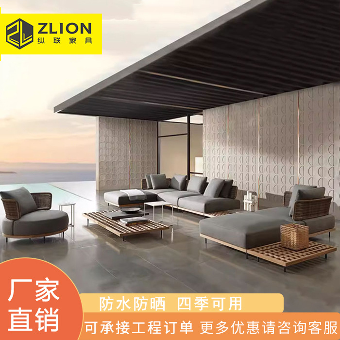 レジャーヴィラ中庭ソファテラスガーデン織ソファ屋外防水日焼け止めホテル家具B&Bソファ