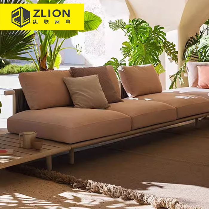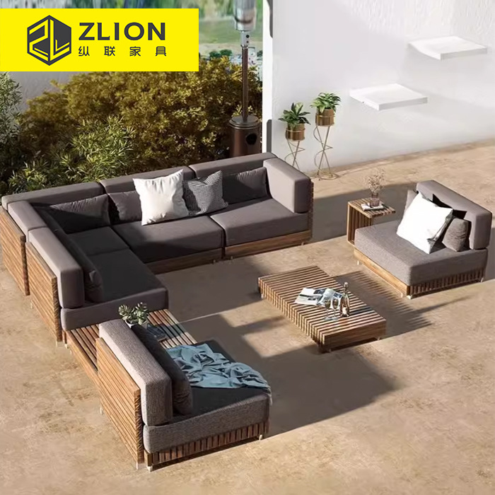 屋外チークソファモダンなミニマリスト家具ホテル屋外バルコニーリビングルームレジャーファブリックソファ組み合わせ