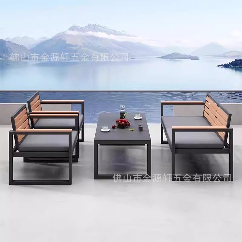 北欧屋外アルミ合金ソファコーヒーテーブルホテルヴィラバルコニー中庭屋外防雨日光浴レジャー家具の組み合わせ