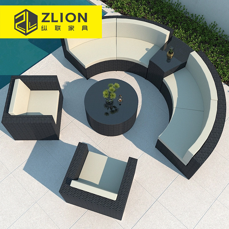 レジャーアウトドアヴィラガーデンアーク型ソファホテル中庭籐織ソファホームステイテラスソファ家具