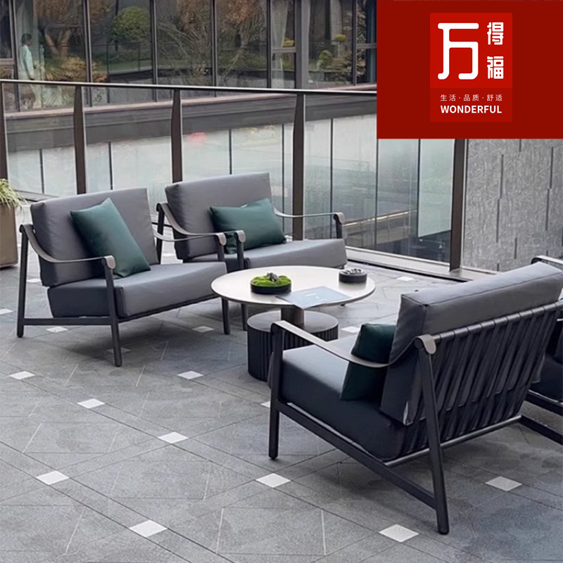 屋外ソファ、ガーデン、中庭、サンルーム、テラス、ヴィラ、ホテル、屋外防水、日焼け止めアルミニウム合金ソファ