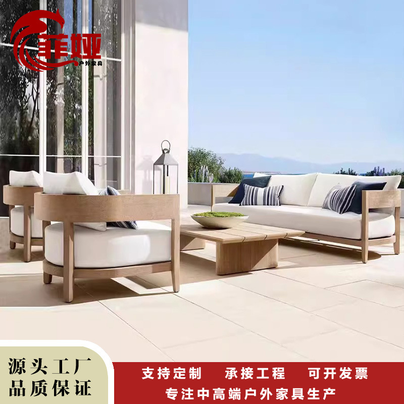 北欧チークレジャーソファーホテルガーデンリゾート屋外現代シンプル風実木庭園家具セット