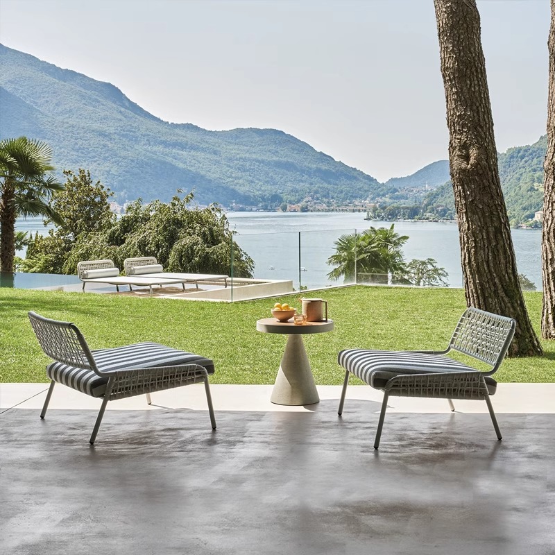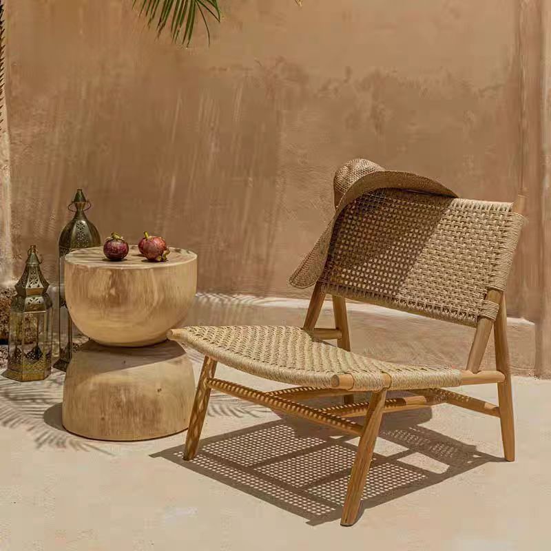 屋外チークロープ編み中庭ソファガーデンデザイナー家具ホテル屋外B&Bリゾートロープ編みソファ