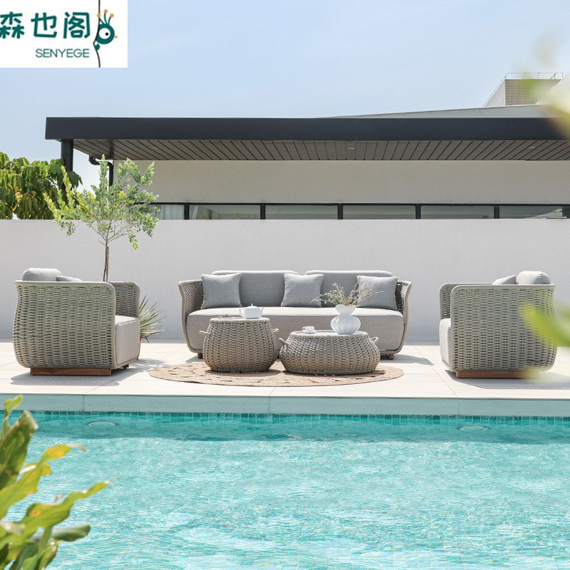 屋外ソファコンビネーションヴィラホテル屋外中庭サンサンプルルームテラス防水チーク籐家具