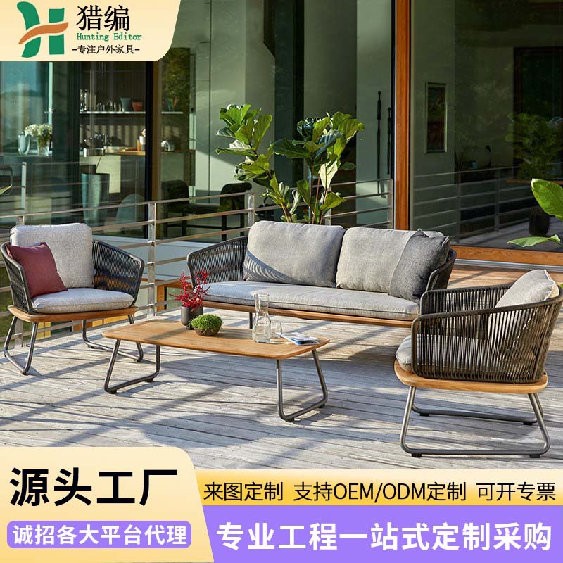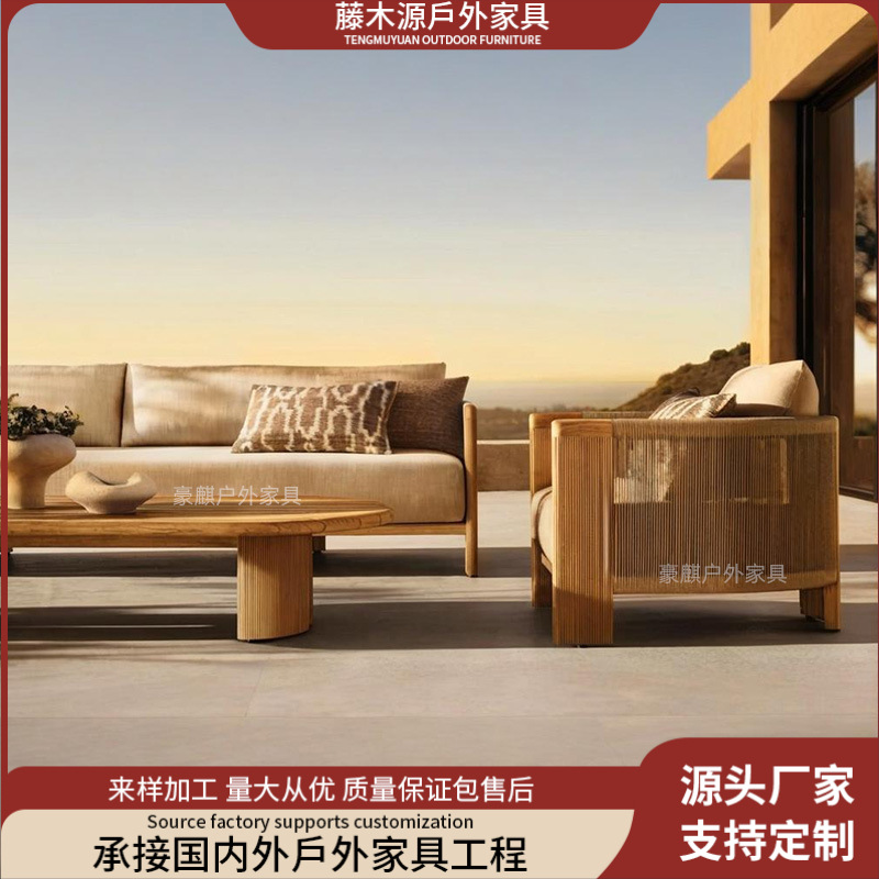 屋外ソファ、中庭、室内、別荘、レジャー、防水、ホテル、民宿、屋外庭園、テラス、無垢材、籐製