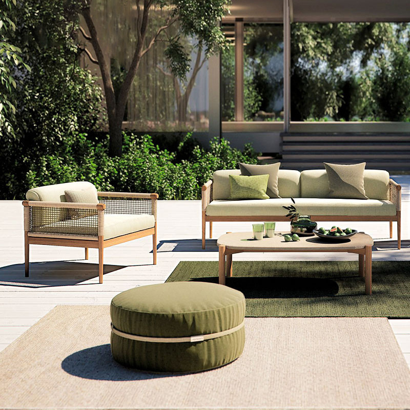 屋外ヴィラテラスソファ中庭籐家具ガーデンテラス北欧チーク屋外レジャーソファセット
