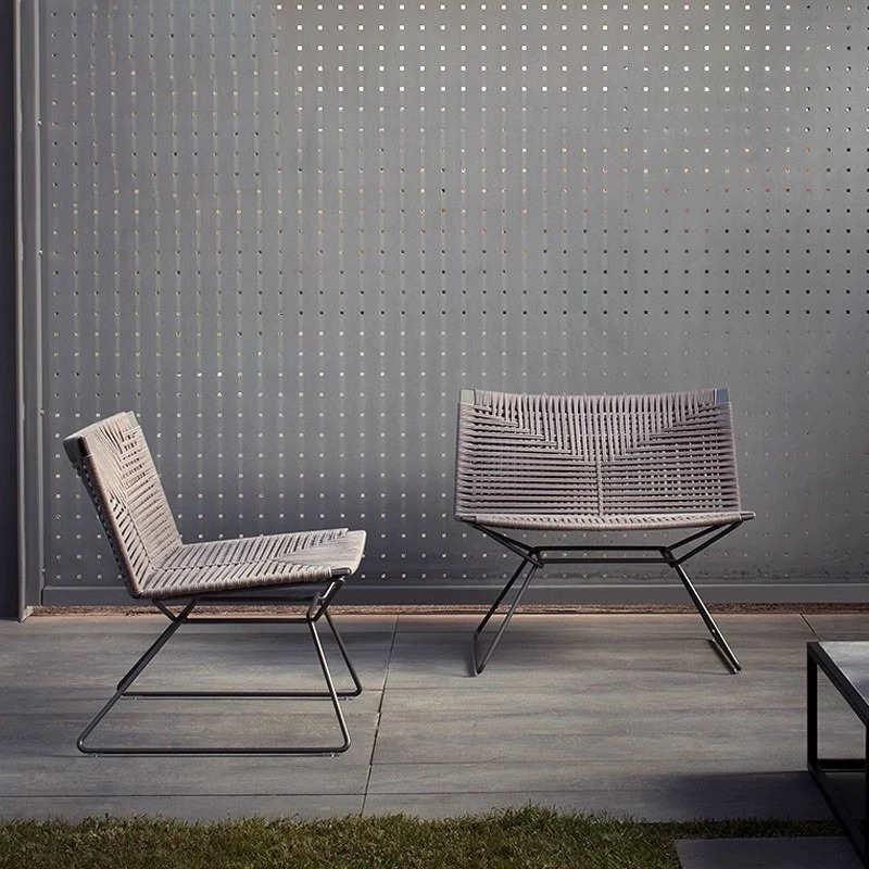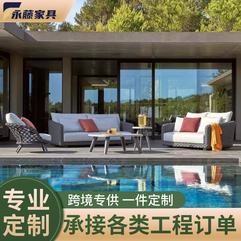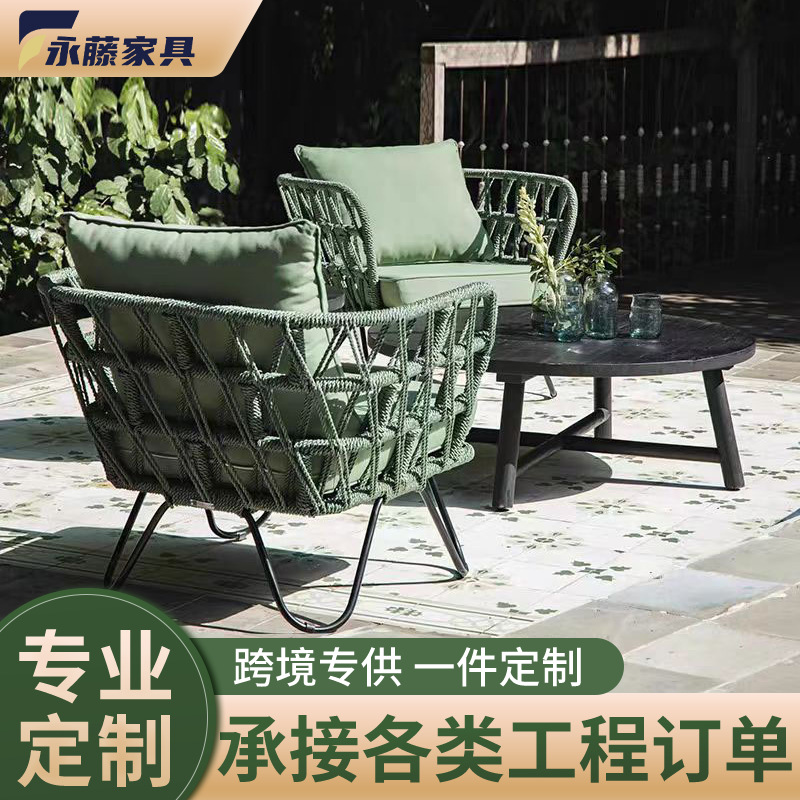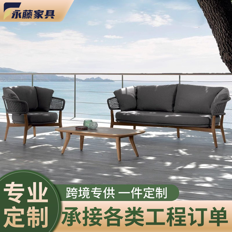 北欧無垢材屋外ヴィラ B&B 中庭ソファコーヒーテーブル組み合わせ屋外ロープチェアホテルバルコニーガーデン家具