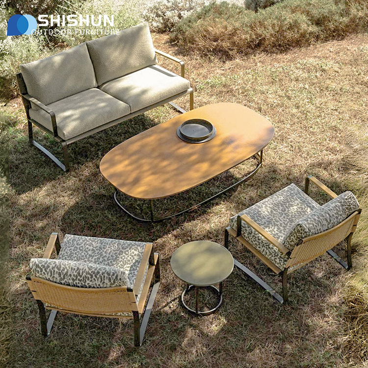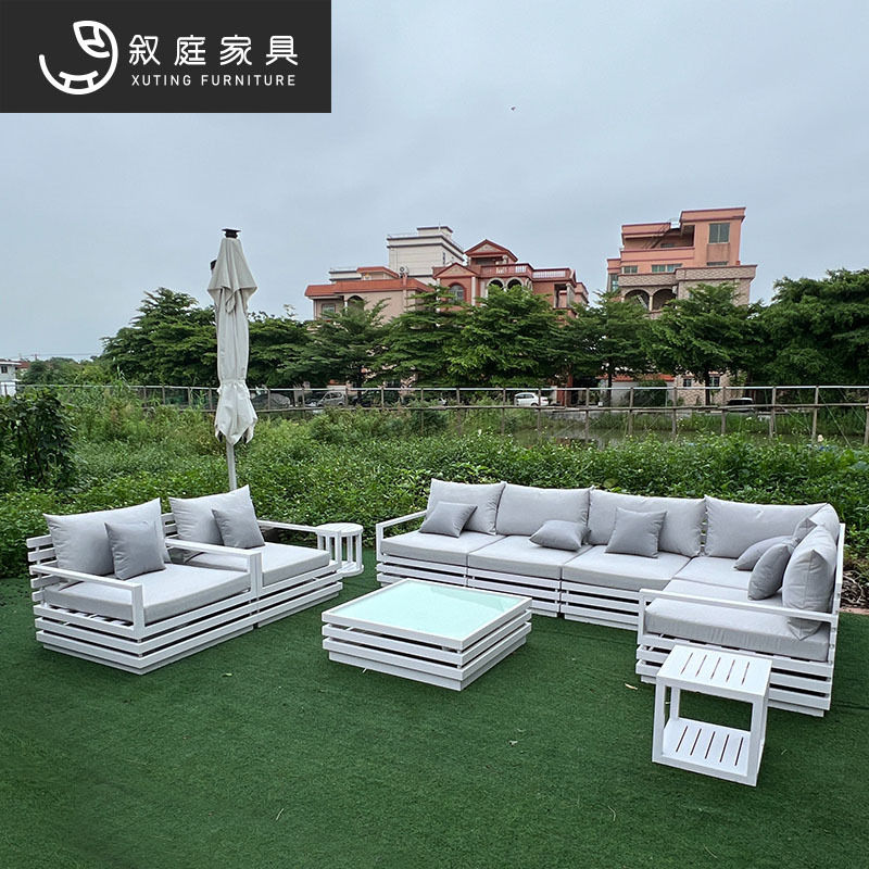 屋外中庭ソファ防水日焼け止めホテルレジャー北欧リビングルームガーデン屋外アルミ合金ソファ