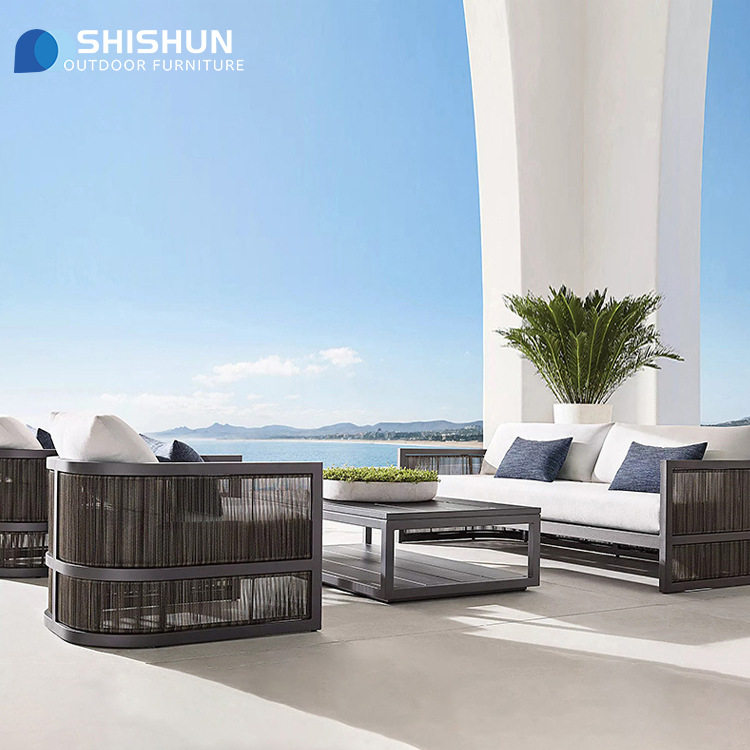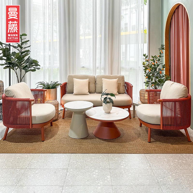 屋外アルミ合金ロープ編みソファ組み合わせ庭園花園陽光房屋外防水日焼け止めレジャー露店家具