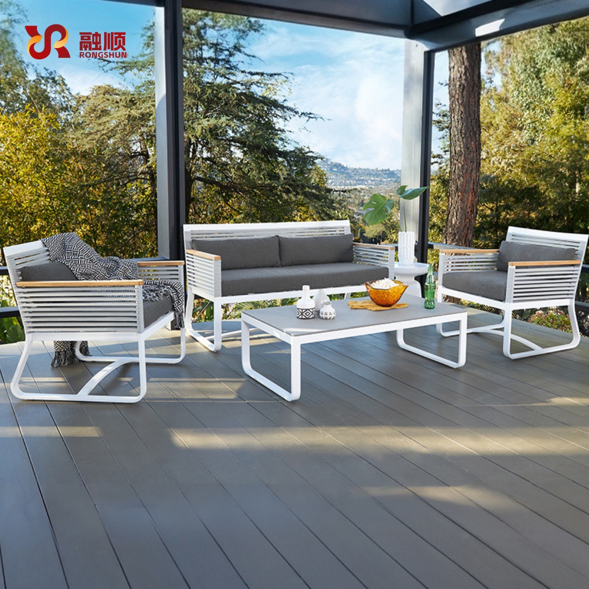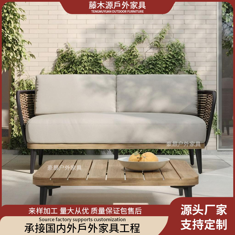 北欧チーク材レジャーソファ屋外家具ヴィラテラスホームステイサンルームガーデンホテルアルミ合金ソファ