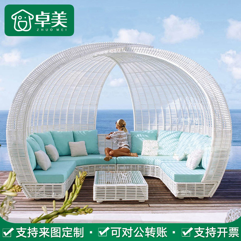 北欧屋外屋外中庭レジャー籐ソファ屋外ヴィラガーデンB&B防水日焼け止め家具組み合わせ