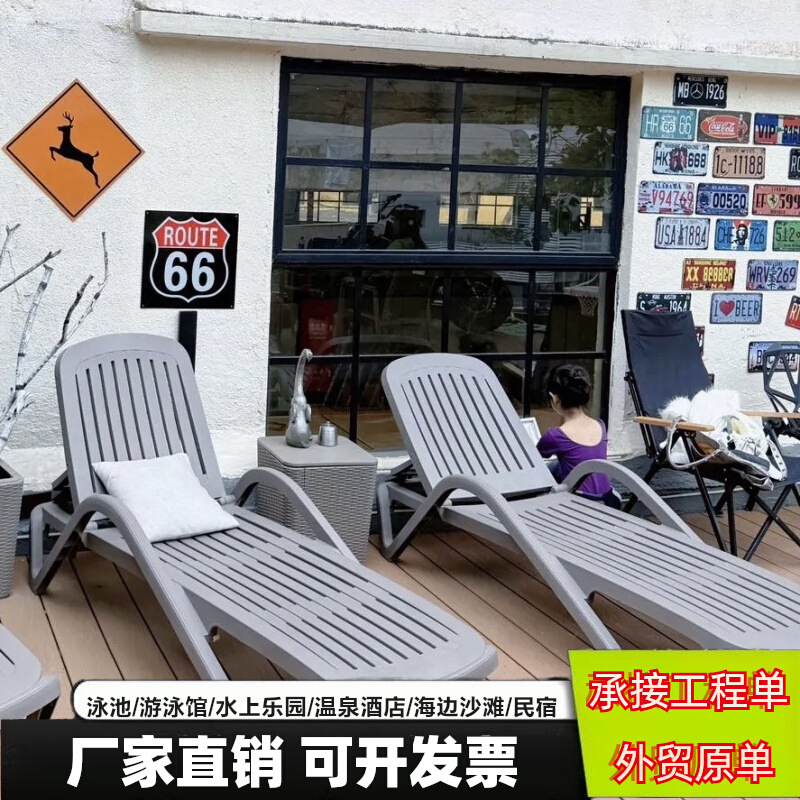 屋外プールのリクライニングチェア、スイミングプール、リゾートホテル、温泉入浴センター、耐日性折りたたみプラスチックビーチチェア