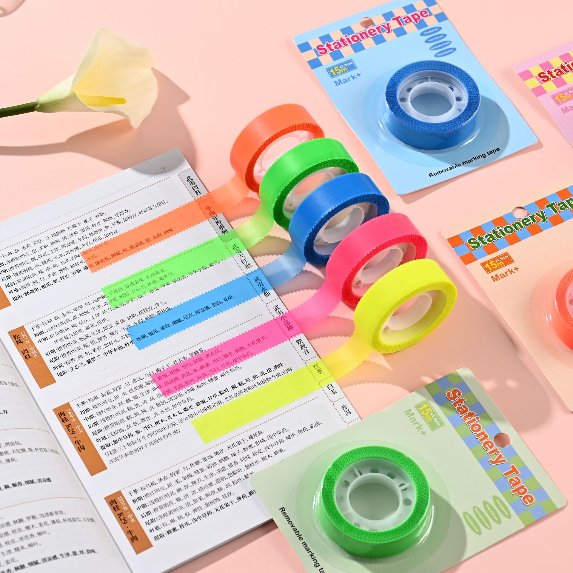 現物蛍光透明テープ学生文房具テープ重点表示テープカラー裂きやすいテープ卸売り