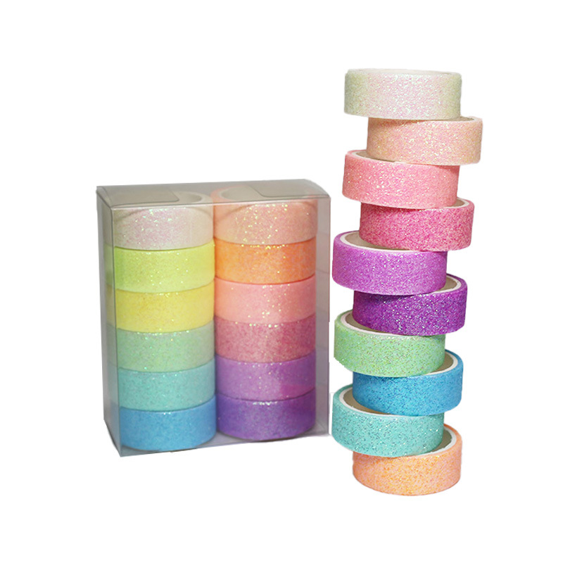 12色の基礎金キャンディー色DIY粉と紙テープ金粉銀粉フラッシュ紙テープ手帳テープ