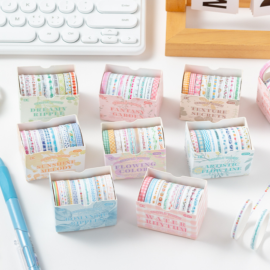 やさしい色调と纸テープ基础手帳セット10巻入极细0.5cm分割テープ文房具贴り