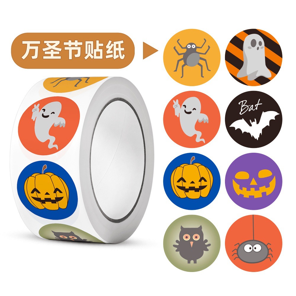 500枚/ロール ハロウィンステッカー 子供用デコレーション ハンドブック スーツケース パソコンステッカー 即納卸売