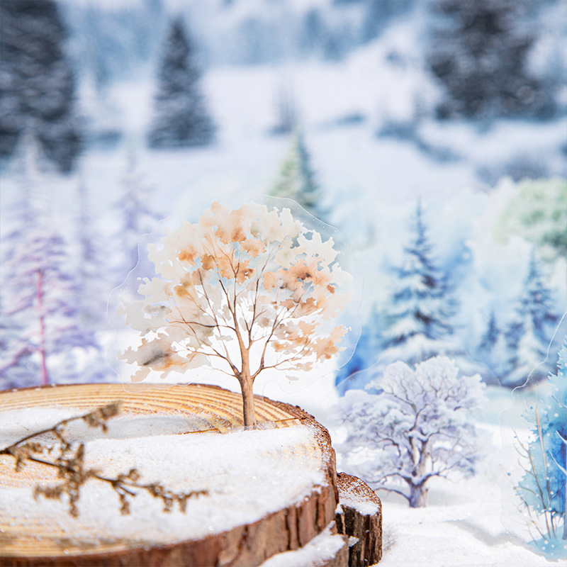 美しい一日冬の樹木造景PETシール雪中樹影シリーズ手帳DIY装飾タイル素材