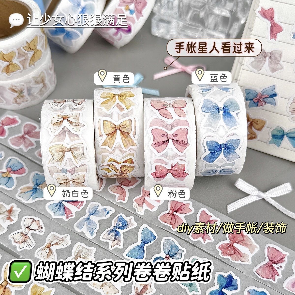 新作蝶結びシリーズ巻きシールins高颜値学生diy素材手帳少女心装飾ステッカー