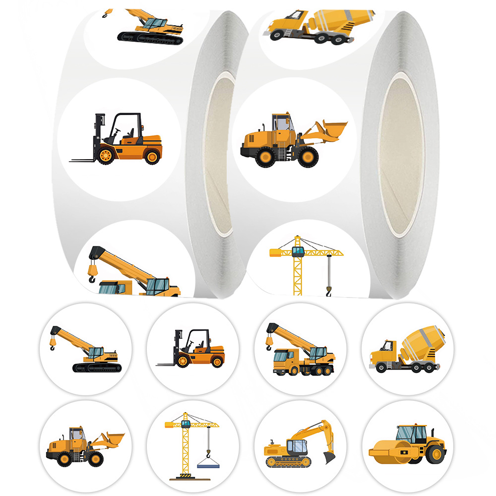 500枚/巻き工事車シール巻き貼り漫画ショベルの手帳シールシールシール貼りフィルムテープ卸売り