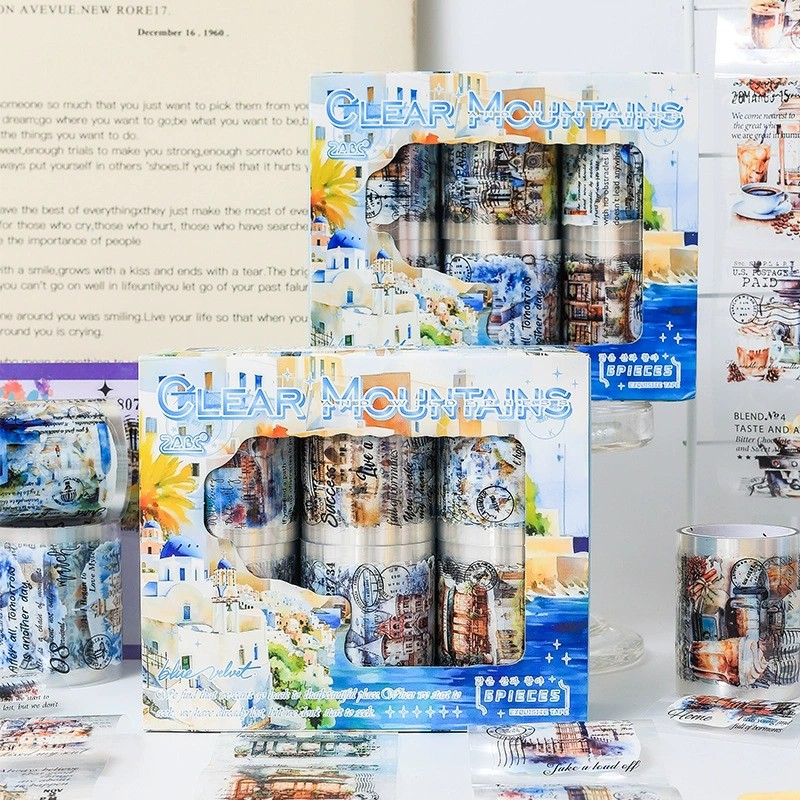 クロスボーダーZABCレトロ風景テープPET手帳テープ悦真山野清朗カットフィルムテープ手帳テープ