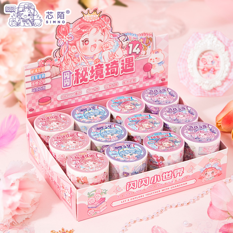 芯の見知らぬ人のキラキラテープの秘境の琦は新商品のキャンプの童話の人物のフルセットの手帳のテープの全体の巻のかわいい漫画に出会います。