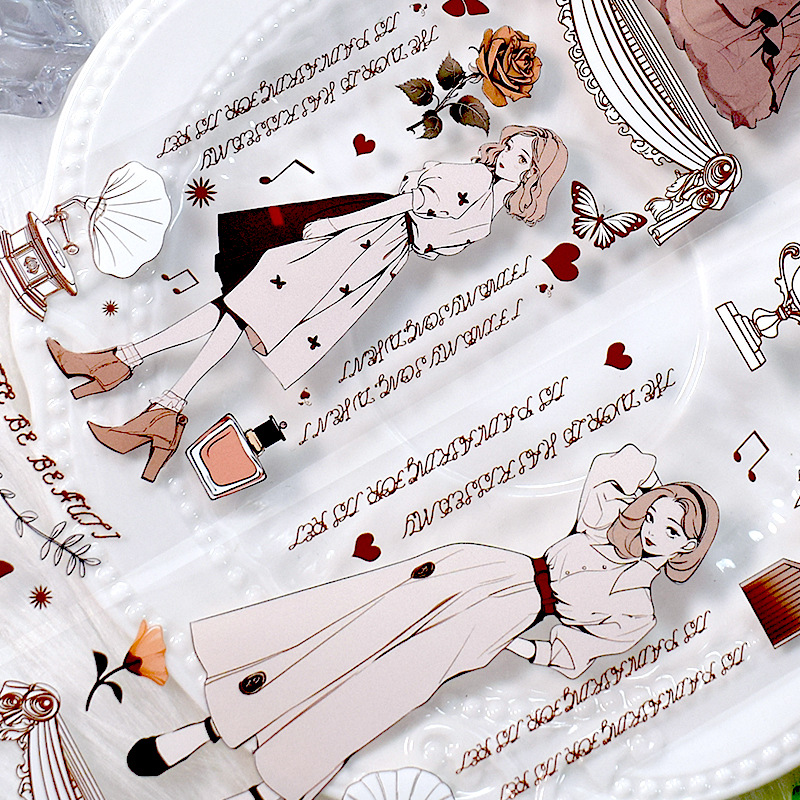 新品起爆petテープモダン香港風人物タイル明るいテープ装飾手帳小清新花素材