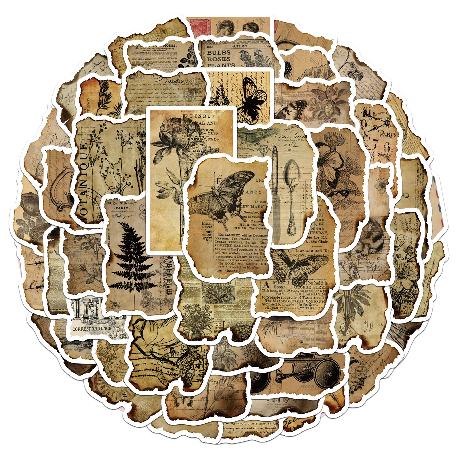 50枚レトロ手帐手帐ステッカーレトロレトロ蝶花柄手帐diyコラージュ装饰素材防水