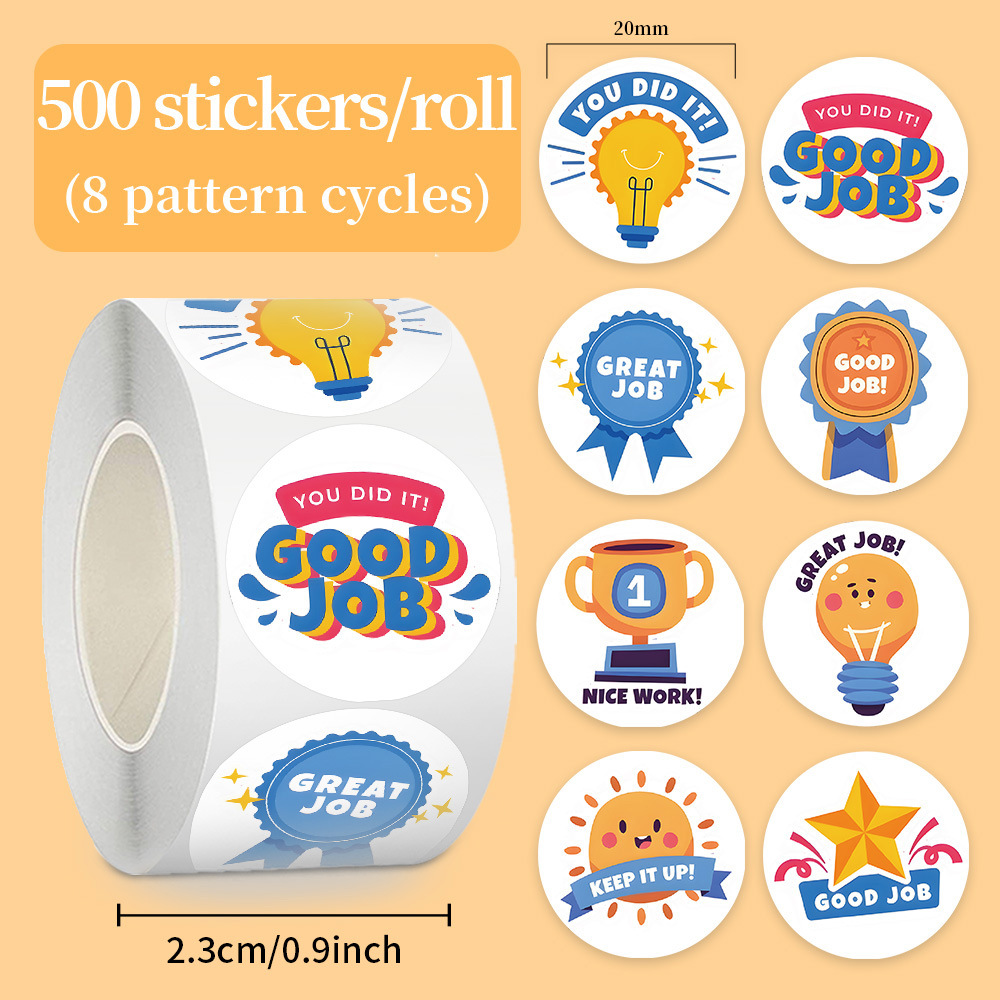 国境を越えたシール巻500英語奨励DIY児童奨励手帳テープシールに円形フィルムシールを貼る