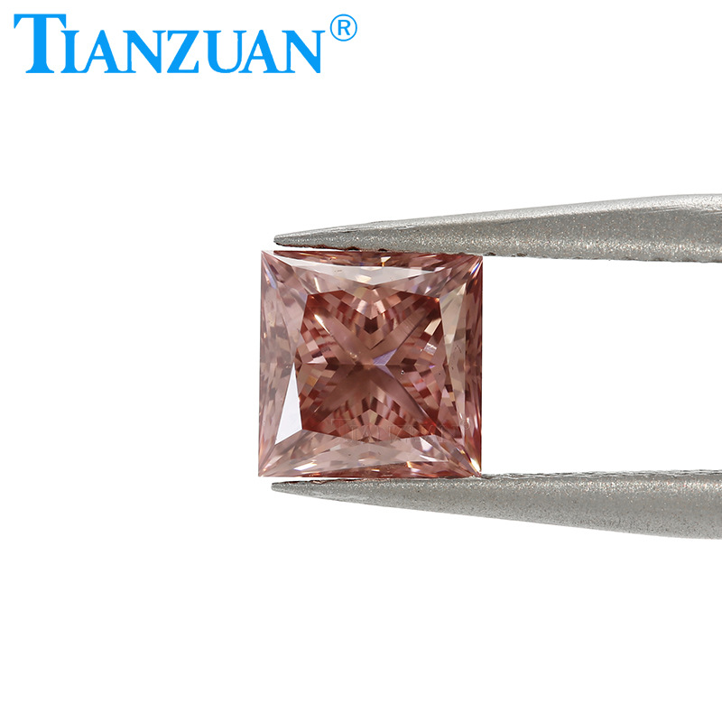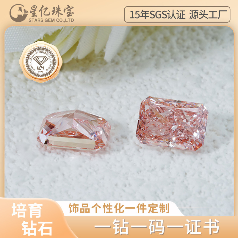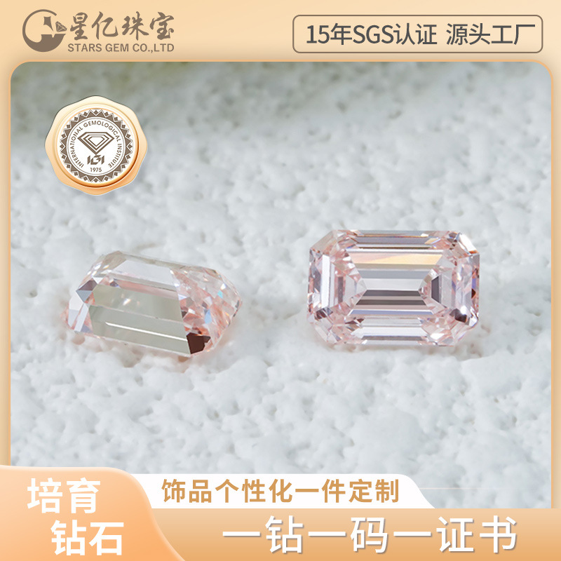 長方形面取り先祖母緑切工浅ブラウンピンクCVD人工手作り実験室育成合成ダイヤモンド裸石