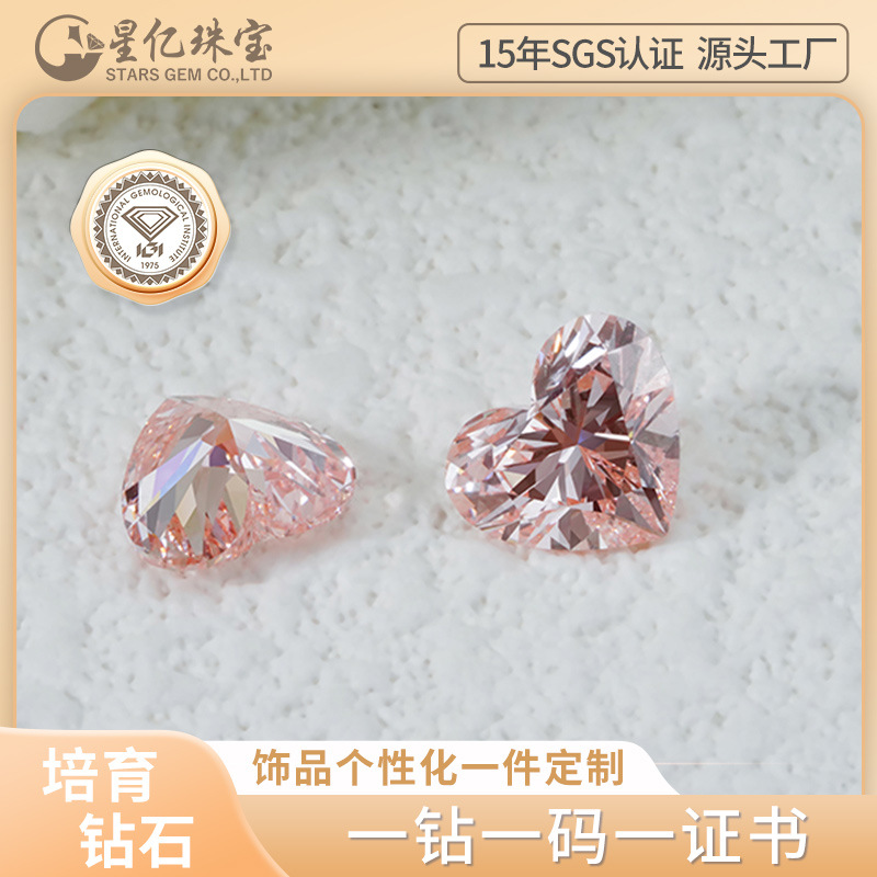 ハート型CVD実験室人工合成ダイヤモンド裸石ブラウンピンク手作りドリル