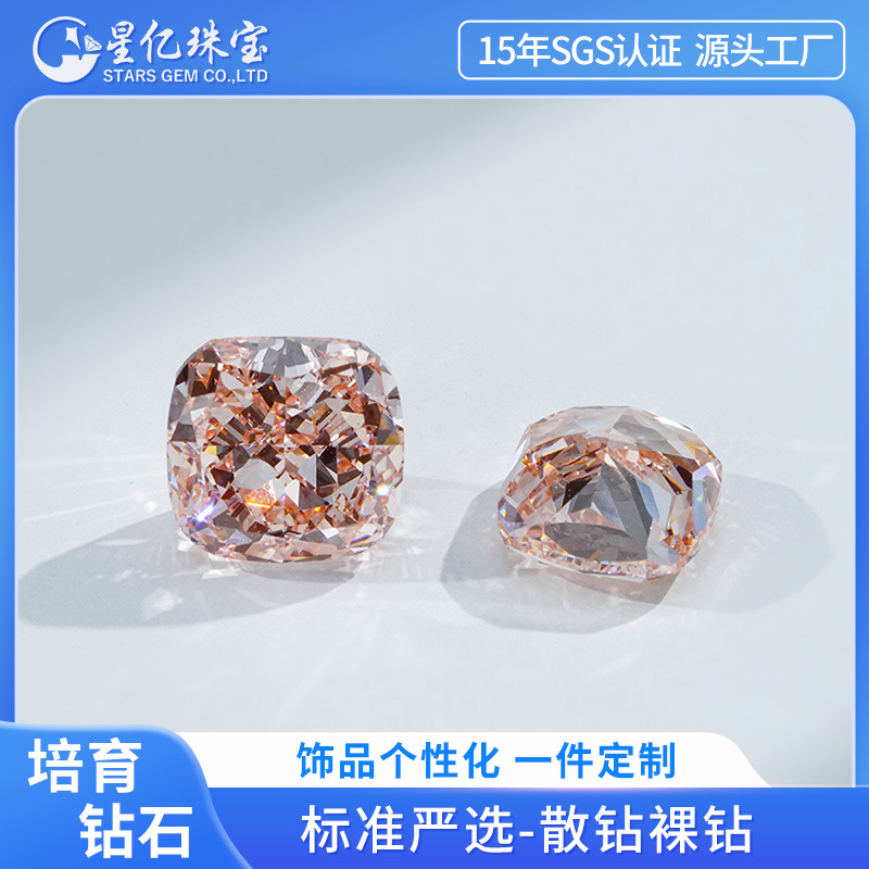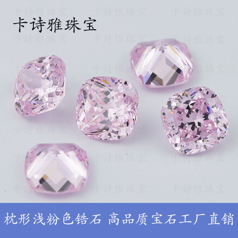 高品質の浅いピンク色の人工合成宝石卸売、枕型ピンクダイヤモンド色のジルコンジュエリー用アクセサリーストーン