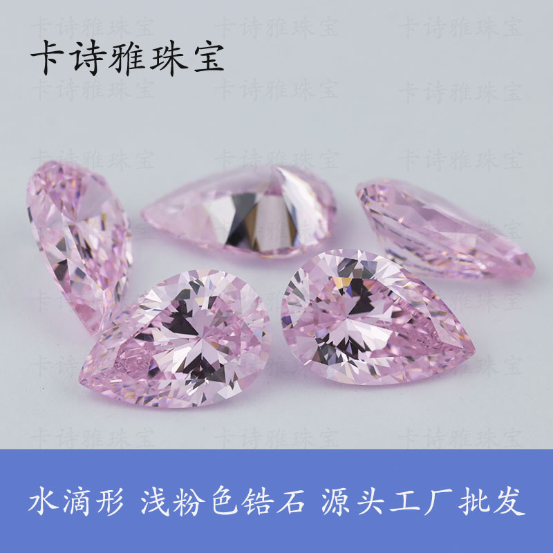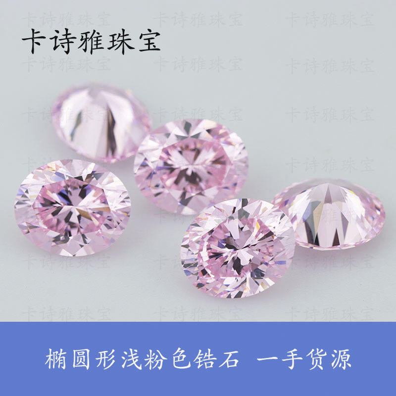 椭圆形粉钻色人工合成立方氧化锆石批发浅粉色蛋形裸石首饰配石