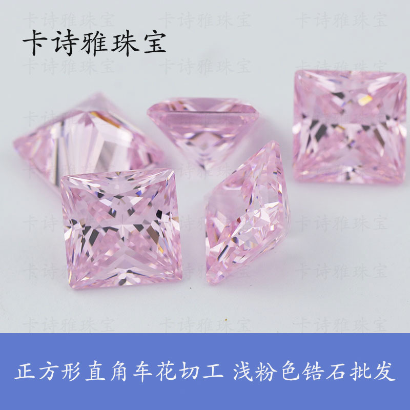 高品質人工合成宝石卸売 正方形直角カット浅ピンクジルコンジュエリーパーツ