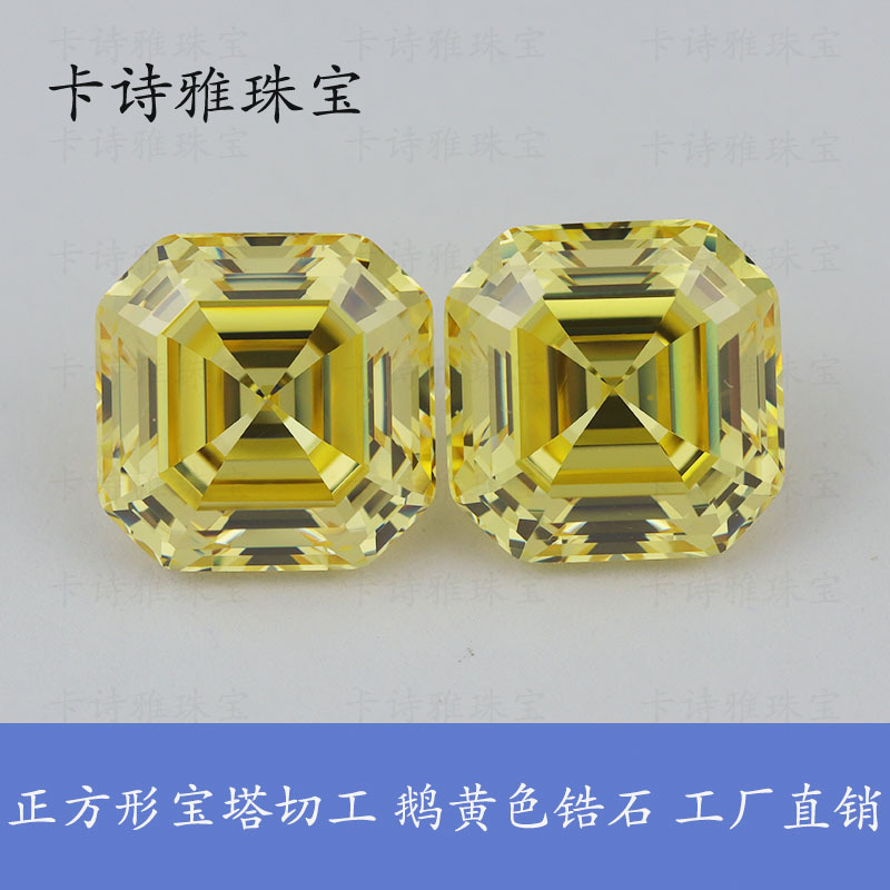 正方形直角カット宝石 高品質人工裸石卸売 グースイエロー ジルコニア ジュエリーパーツ