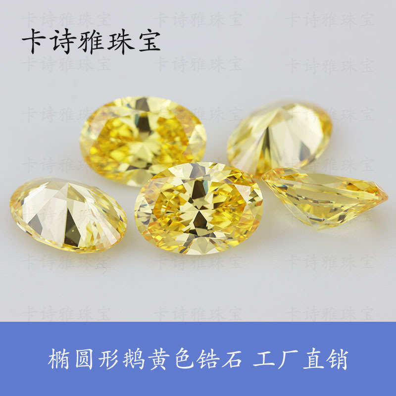 高品质锆石椭圆形鹅黄色人工合成宝石批发蛋形黄钻色裸石首饰配石